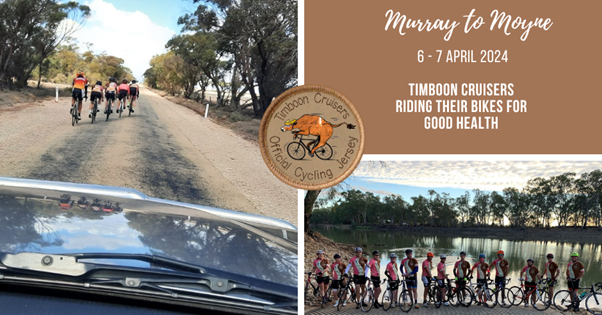 [vc_row css_animation="" row_type="row" use_row_as_full_screen_section="no" type="full_width" angled_section="no" text_align="left" background_image_as_pattern="without_pattern"][vc_column][vc_column_text]For at least the last 27 years Timboon Cruisers have pushed the pedals in the Murray to Moyne Cycling Relay during April to raise important funds for Timboon and District Healthcare Service (TDHS) and this year was no...