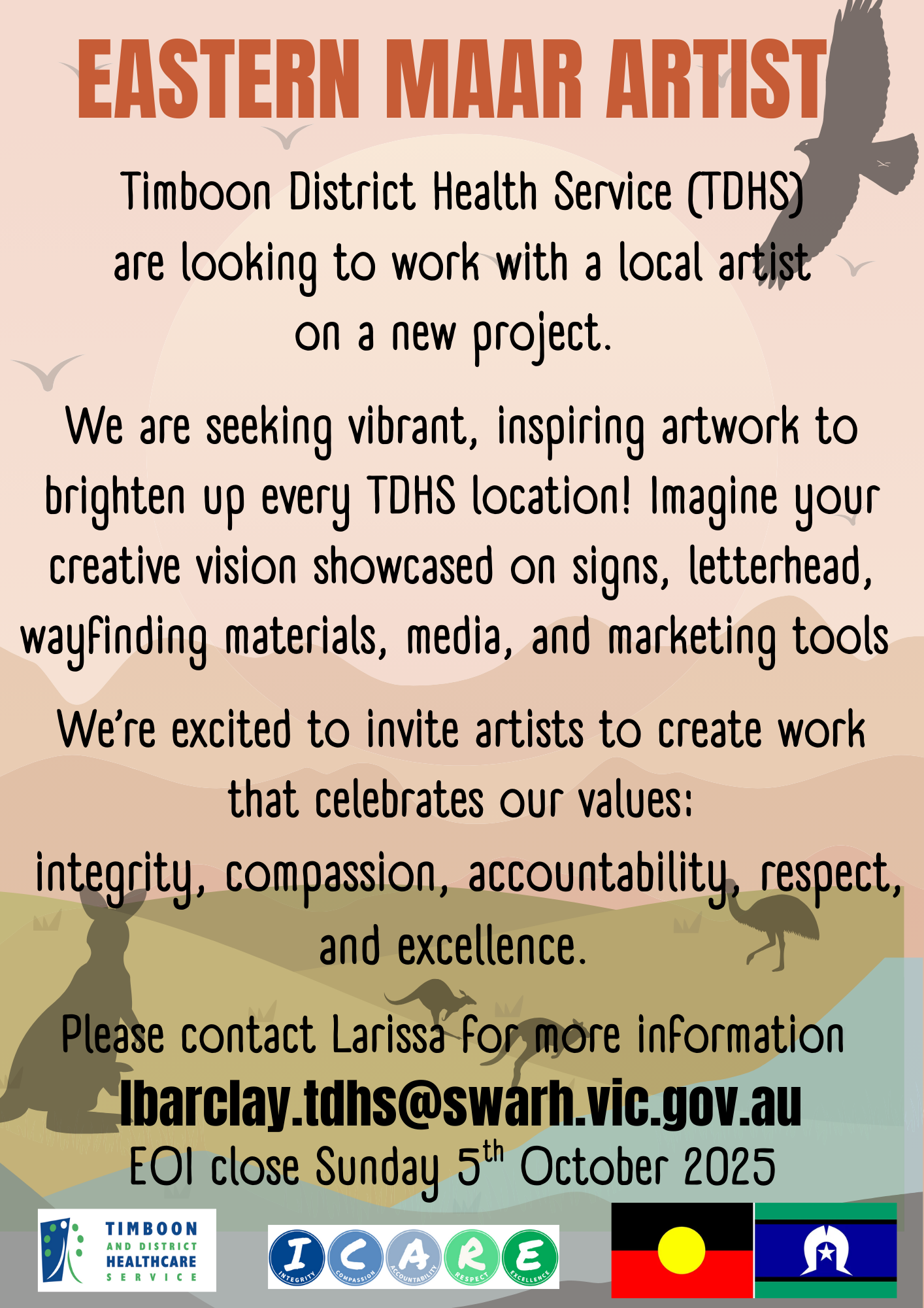 02 Sep Eastern Maar Artist…Timboon District Health Service (TDHS) are looking to work with a local artist on a new project. Posted at 12:04h in News by GBM technology 0 Comments 0 LikesTags: Services
